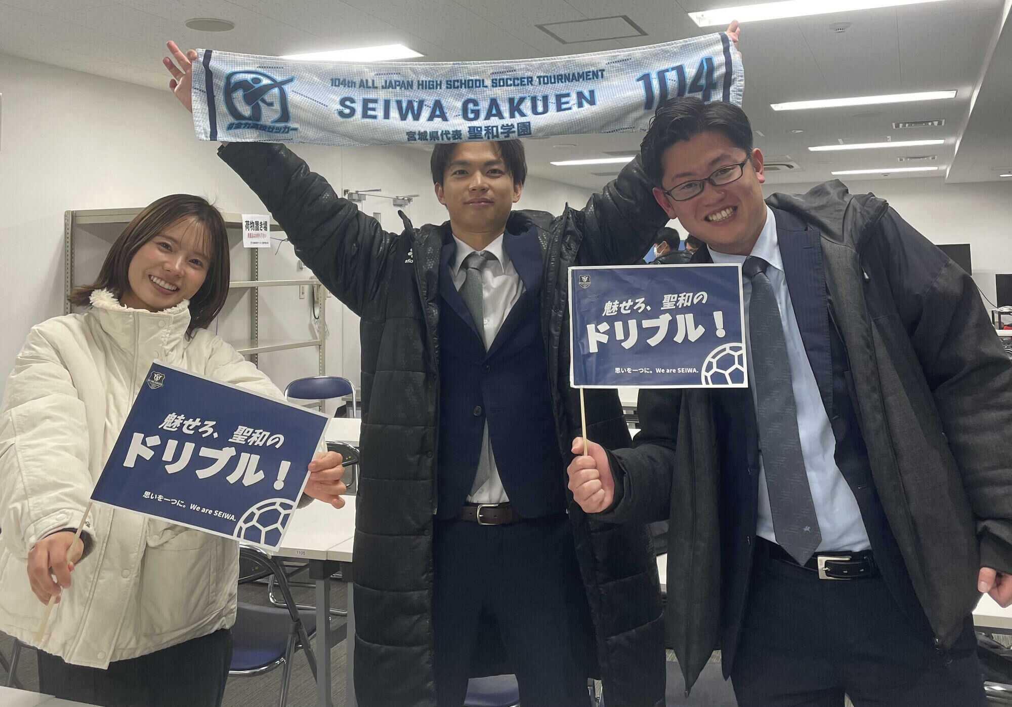 104回目の冬 2026.01.20 (Tue) 第104回全国高校サッカー選手権大会全国大会に、瀬藤アナ、吉見アナと参加させてもらいました。宮城県代表・聖和学園が掲げたテーマは「笑顔」。3回戦で敗れた際も、涙の中に笑顔がありました。これまで私が見て来た敗戦チームの中で最も笑っていたのが今年の聖和学園でした。側で見ていたこちらも、それだけやり切ったんだなと、悲しみではなく、温かい気持ちになりました。 また、準決勝・決勝にも、サポートメンバーとして瀬藤アナと参加させていただき、取材したいOBを探すべく、2人で国立競技場のスタンドを駆け回りました。マイクを握らずとも、良い放送にするためにチームで動く感じが、高校サッカーって感じで最高の時間でした。毎大会、高校生の熱いシーンを伝えられること、同じ思いを持ったアナウンサーやディレクターの仲間たちと同じ時間を過ごせることが幸せです。今度は国立でマイクを握れるように、また1年精進しようと決意を新たにできた年末年始でもありました。#全力高校サッカー