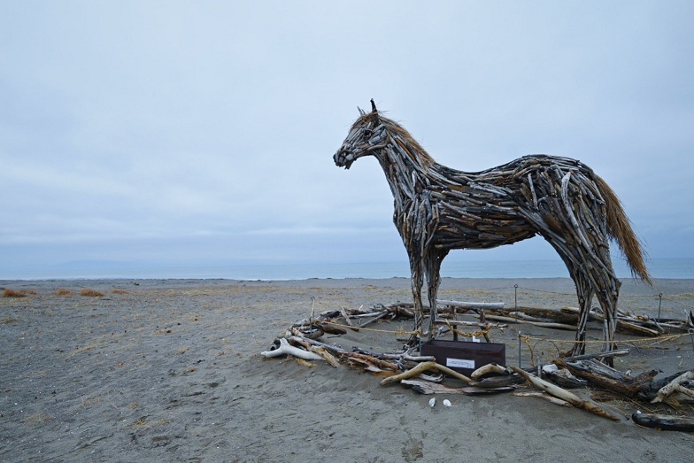 今回は砂ではなく、1000本以上の流木を使って『馬の流木アート』を作ったそうです。