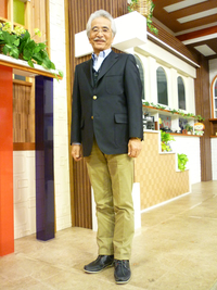OFFバージョン→中に柄ベストをプラスし、ボトムはチノパンに