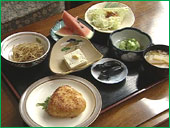 「旅館 山菜荘」の 味噌焼きおにぎり定食 ¥525. ¥500.でお湯に浸かり、その間に 作っておいて貰います。 漬物・きんぴら などは全て女将さんの手作り。 どれもこれも美味しいの! この宿に泊まれば、美味しい田舎料理を 堪能出来るのに間違い無し!