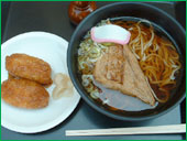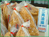 神社の境内にある参拝者休憩所の 店先に、お稲荷さんらしいものを 発見! 「竹駒名物 油揚げ」(2枚入り¥370.) お土産として、お供えとして 買われるお客さんが多くいます。