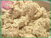 午前中からの仕込みは 女将さんのお仕事。 野菜・肉・じゃがいも等がバランス良く 練りこまれています。