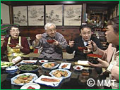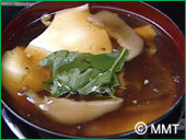 15代目のご主人のご好意に甘えて、 涌谷に代々伝わる伝統料理、 「おぼろ汁」を ご馳走になりました。 14代目のお母様が、代々伝わる櫻井家の おぼろ汁を心を込めて作ります。 味付けは、醤油・しいたけ・酒・しょうが!