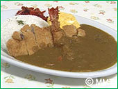 シェフは若主人のお母さんです。 自慢の一品を出していただきました。 スペシャルカレー(¥1000.) じっくり煮込んだ自家製のカレールーに トンカツが一枚!エビフライが一本!玉子焼き! ボリューム満点です!