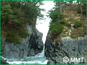 名勝 神割崎です。 割れた右側の岩側が女川町! 左側が志津川町! 今日は志津川町をぶらっとしましょう。