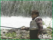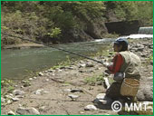 皆様は暫く渓流で魚を釣ろうとしている佳生と 美しい景色をお楽しみ下さい。 新緑!そして美しい川の流れ!鳥のさえずり! これも渓流釣りの醍醐味です。 ・・・そして40分経過