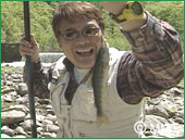 名人が竿を出すこと5分、鋭い当たりが! 魚体に美しいパーカラーが見事な 山女魚を釣り上げました! さすが 名人!
