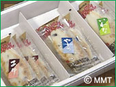 たどり着いた所は「やくらい土産(どさん)センター」 こちらには、僕と名人が釣り上げた イワナやヤマメを使った珍しいお土産品が あるというのです。甘露煮などは良く見かけますが どんなものでしょう? それは、お店の奥の冷蔵庫の中にありました!