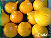 ※余談(こんな面白いかぼちゃも売られていました! 真っ黄色な「コリンキイ」! 漬物やサラダで 頂きます! 煮ないで下さいよ!)
