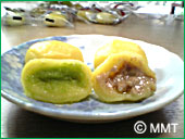 ありました!黄色い「きびだんご」! 串に刺さっているわけでは ありません! が 何故かだんご? 桃生では昔からキビの生産が行われており 地元で取れたキビが使われています。 モチモチした食感は、本物のお餅のようです! 中のあんは、「ずんだ」と「くるみ」! どちらも美味しい!!! 少し冷たくて、食べると中のあんこが トロッと 出て来て!美味し〜い! 桃生のお使い物!お土産に! 大好評なのを 納得!
