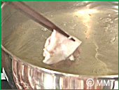 しゃぶしゃぶして、身が白くなったところで 頂きま〜〜〜す! まずは、何もつけずに頂きました! 「旨〜〜〜〜い」! 豚肉特有の臭みが無いだけではなく、 脂身・赤身の甘さ!が抜群!!! 軽く、塩を付けて頂いたら、 尚更甘さが引き立ちます!!! 恐るべし!「桃生ポーク」!!!