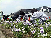 郷郷(ごうごう)ランドのサンファンバウチスタ号を模った遊具から滑り降り、県道を渡れば「道の駅 おおさと」何やら、高校生達が花壇に花を植えています。黒川高校の生徒達が、黒川郡内の施設に花を植えるボランティアーをしているのでした。感心 感心!こういう崇高な精神を養っていって下さい!高校生達に別れを告げ、「道の駅 おおさと」へ!