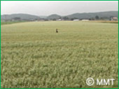 これは、そば畑!広いでしょう!白い花を付けた夏そばの花が、可憐に咲いていました。それにしても広い そば畑!