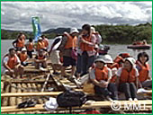 お腹もいっぱいになって、ぶらぶら歩いていると!ログハウス?作っているの?何と「イカダ」でした!