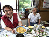 桶谷さんが、お昼をご馳走して下さるというので、図々しく ご自宅にお邪魔してしまいました!出てくるわ!出てくるわ!海の幸!解禁になったばかりの ウニ 100個分!「ウニは広いな大きいな」!鯨の刺身・あわびの肝の煮付け・カツオの煮付け・まるこという貝のお吸い物。そして、ビール!これは 海の幸では無いか〜!桶谷さんと 乾〜〜〜杯!ウニの美味しい食べ方を教えて頂きました。ウニの味噌和え。ウニが更に濃厚な味わいになります。これを、ご飯にかけても美味しいんだ!