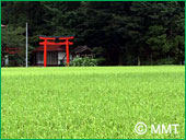 頭が垂れだした稲穂が実る田んぼの先に、真紅の鳥居を発見しました。まずは氏神様に ご挨拶!鳥居には「北野天満宮」の文字学問の神様ですね!綺麗に手入れされた境内は、ご神木とも云うべき銀杏の巨木や、秋には綺麗な赤に衣替えするもみじが荘厳な印象を湛えます。