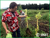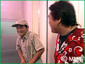 うわ〜〜〜〜〜!一枚一枚手作業で吊るされた 煙草の葉!鼻を近づけてみると、微かな煙草の香り!火を点けてみました!立ち上る青い煙は、まさしく煙草の香り!!!禁煙して2年になる私にとっては、甘い誘惑の手が忍び寄る取材でした!危ない 危ない!愛煙家の皆様!吸い過ぎには ご注意です!