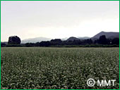 夕暮れの川崎!蔵王の山々の夕景が美しい!そばの花が咲いていました!川崎はそばの作付面積は宮城では一番です!次回は新そばの香りを訪ねに来ましょうか!!!