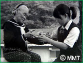 学生服の昔少年や、もんぺ姿の昔女学生と