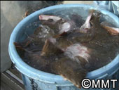 「たも」ですくえば船の水槽から魚が出てくる出てくる!カレイにヒラメにスズキ!