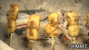 気になるのは囲炉裏の火に炙られた食べ物?
