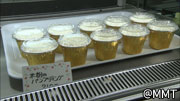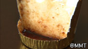 カップの中に米粉で作ったパンを入れ、プリンの液を流し込み焼きます。