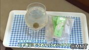 「くずきり」と「シロップ」と「小梅」が入った包をグラスに入れて、