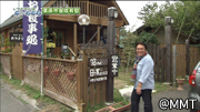 ホタルの絵が書かれた橋を渡ると「茶房 骨董芸 おもて」???