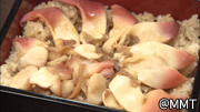 ほっきの出汁で御飯を焚き、後から軽く煮付けたほっきを乗せるのが「たこ八流」!