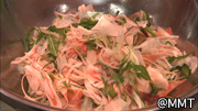 季節の野菜と大根の葉っぱをみじん切りにして加える