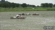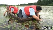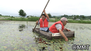 組合の方々が「じゅんさい沼」で摘み取りの真っ最中!