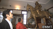 この騎馬像は青葉城の騎馬像の原型です。黄金色に輝いて