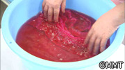 一緒に混ぜる薬品や生地の材質によって染まり方も様々です。。。