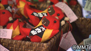 「つるし雛」ではありません。。。この「赤べこ」は布でできてるんだ〜〜〜?