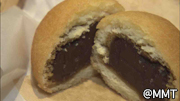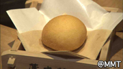 うわ〜〜〜!ドーナツの厚皮の中には薄皮饅頭が1個入ってます。。。