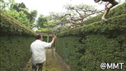 生垣が綺麗に刈り込まれた回廊を進めば!
