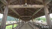 ヘェ〜!橋に金山杉で作られた屋根がかかってる・・・