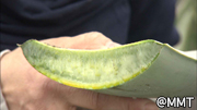 アロエの切り口を見せて頂いたら・・・無色透明!