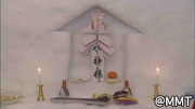 かまくらの中に祀られた「水神様」の雪の神棚が