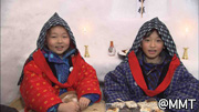 可愛い「雪ん子姿」の男の子と女の子。。。
