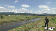 青空に白い雲!綺麗な川!青い山脈!そして、田圃の稲も美しい。。。