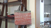 古い生地を細く裂いて織物を作り作品を作ります。。。「鞄」であったり