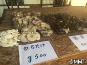 店に併設された場所には自家栽培のリンゴやキノコを販売しています。。。