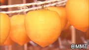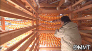 お店の2階の干場には燻蒸された柿が綺麗に吊るされています。。。