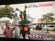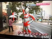ここは!「松明通り」。。。円谷プロのキャラクターがモニュメントとして 飾られてるいるそうです。。。あれ?あれは「ウルトラマンタロウ」だ〜〜〜!