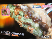 「ハンバーグ」?肉のハンバーグではありません。。。 「スピルリナ」という「藻(も)」の一種だそうです! 目を瞑って食べたら肉ですね。。。