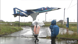 もう少し歩くと、鹿妻駅前にブルーインパルスのオブジェが!!