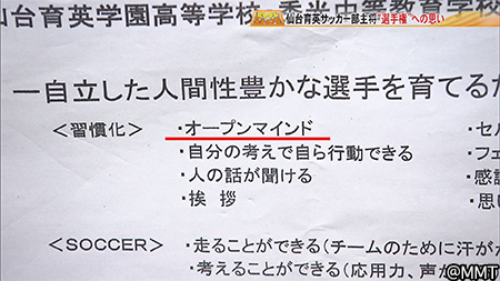 仙台育英の試合を見たことがきっかけで、『もっと高いレベルのサッカーがやりたい』と親元を離れ、