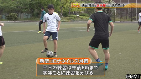 180人を超える部員がいる仙台育英サッカー部。新型コロナウイルス感染予防のため、平日の練習は5時まで。