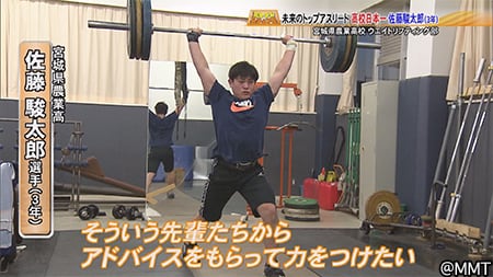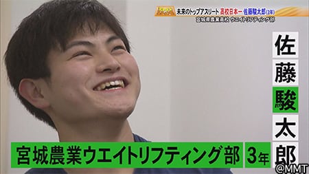 宮城農業ウエイトリフティング部3年、佐藤駿太郎くん。